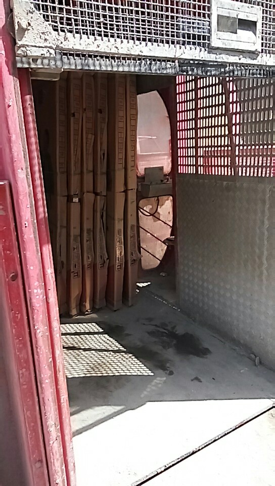 2018年5月7日太谷工地門已到貨正在用電梯往樓上運